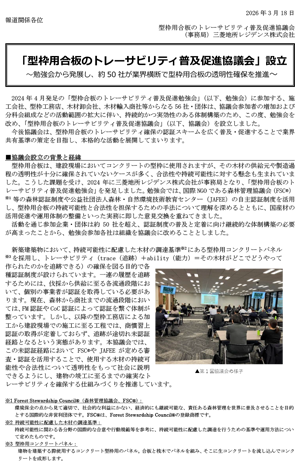 2024年4月発足時より当社も携わる「型枠用合板のトレーサビリティ普及促進勉強会」が「型枠用合板のトレーサビリティ普及促進協議会」として改めて設立されました。「木を活かす」理念と資源が循環する持続可能な社会の実現に向けて、材料の側面からしっかりサポートして参ります。